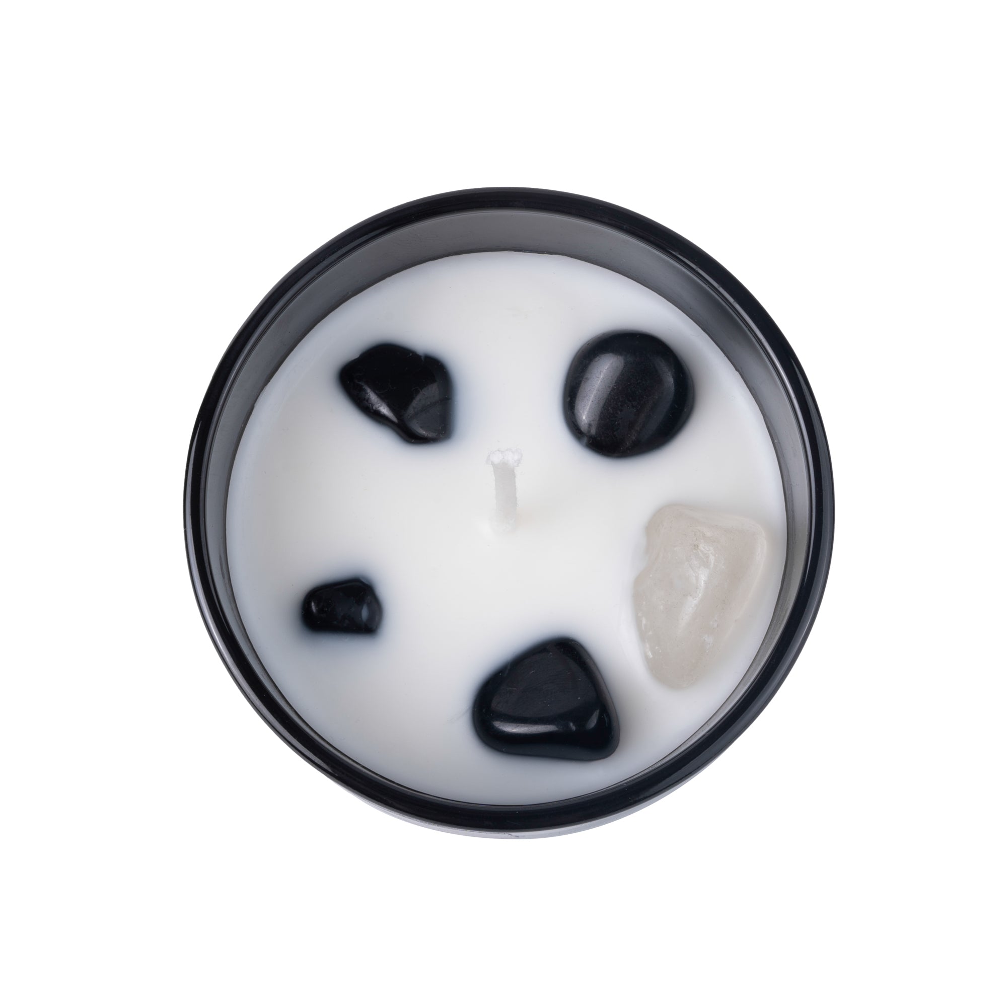 Life is energy—and with every flicker of the flame, you’ll feel the vibrations of clear quartz and black obsidian releasing their potent force. As the gentle warmth caresses the crystals, envision any chaos around you melting away.